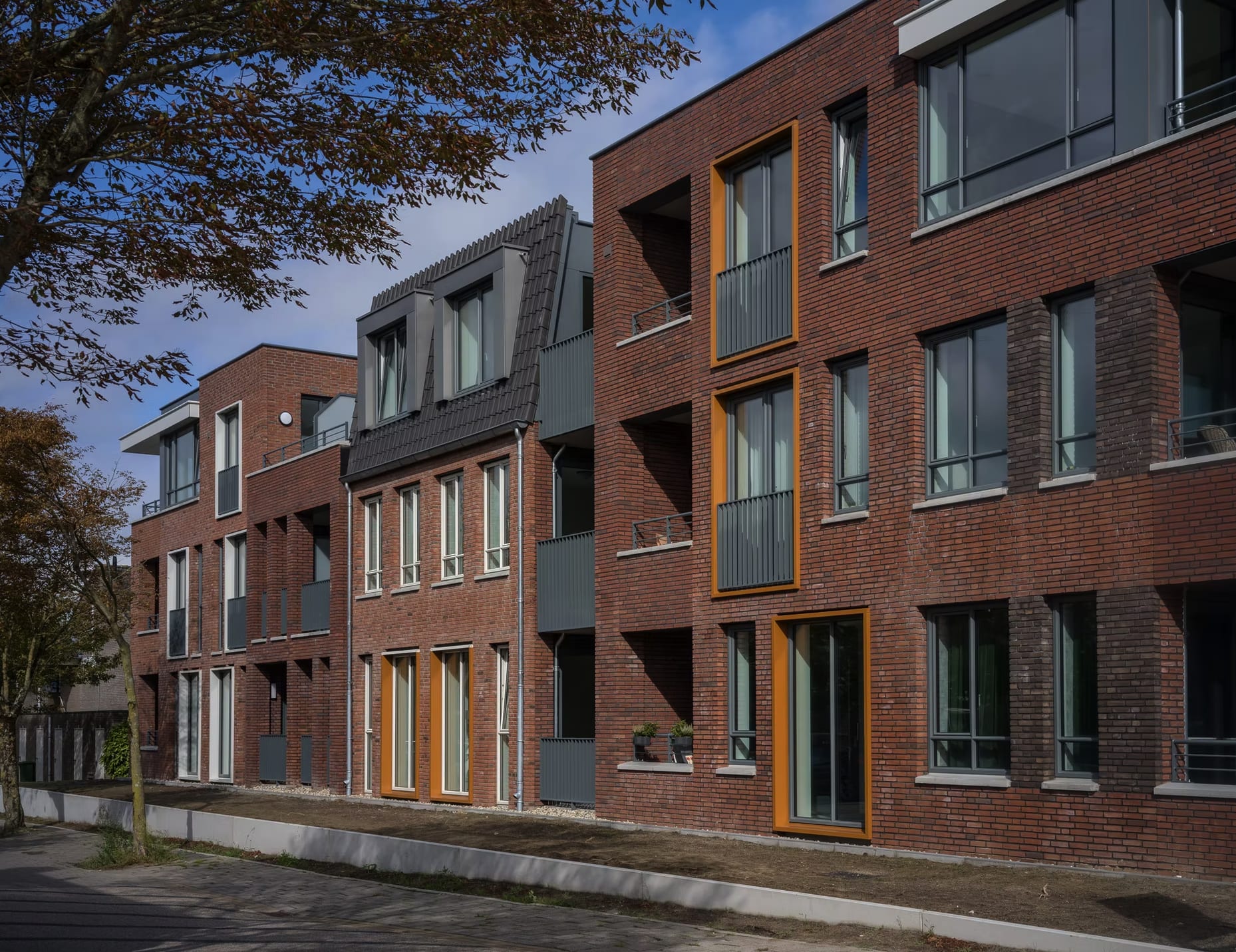 De appartementen hebben een fraaie uitstraling gekregen door het gebruik van verschillende kleuren en gevels. Dertig appartementen hebben een oppervlakte van 60 vierkante meter en 15 appartementen van 75 vierkante meter. De appartementen zijn verdeeld over drie woonlagen. Een project dat voor ons dus een flinke omvang had. De voorman van het project was Johan, hij blikt met trots terug op deze uitdaging.